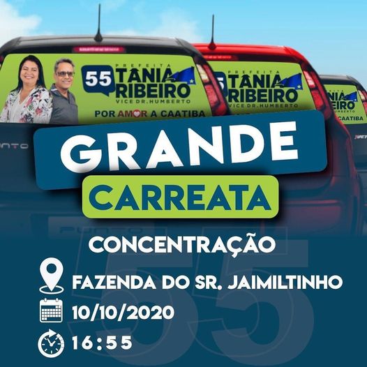 AGENDA ELEITORAL: HOJE TEM CARREATA DE TÂNIA RIBEIRO E HUMBERTO EM CAATIBA