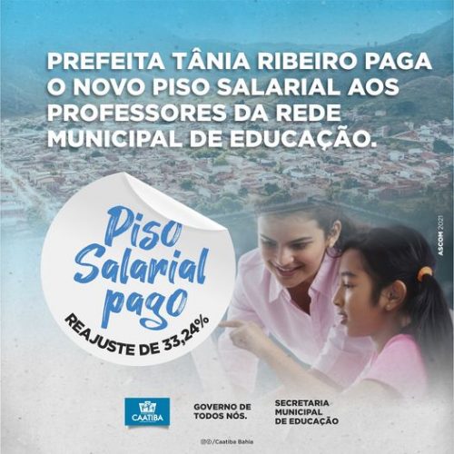 A Prefeita Tânia Ribeiro efetuou o pagamento dos professores efetivos e contratados da rede municipal de educação com o reajuste do novo piso salarial integral de 33,24% definido pelo Governo Federal.