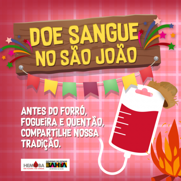 A campanha faz parte do Junho Vermelho, mês de incentivo à doação de sangue, e também das ações promovidas pelo Governo do Estado, através da Secretaria de Saúde da Bahia (SESAB), para garantir que baianos e turistas possam curtir com toda a estrutura necessária os festejos do São João.