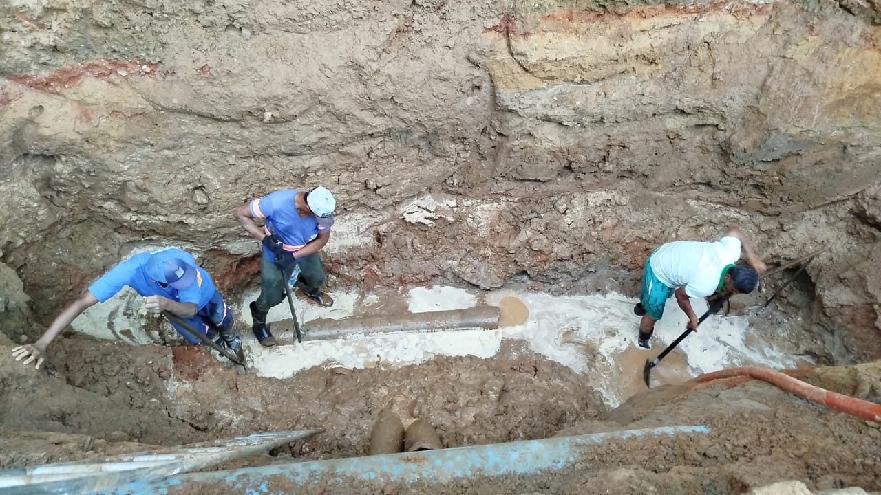 Após intensas 12 horas de trabalho eficiente, as equipes técnicas do SAAE concluíram a intervenção na Avenida Gilberto Moraes (Beira Rio), onde rompeu a adutora de água que abastece as vilas e residenciais.