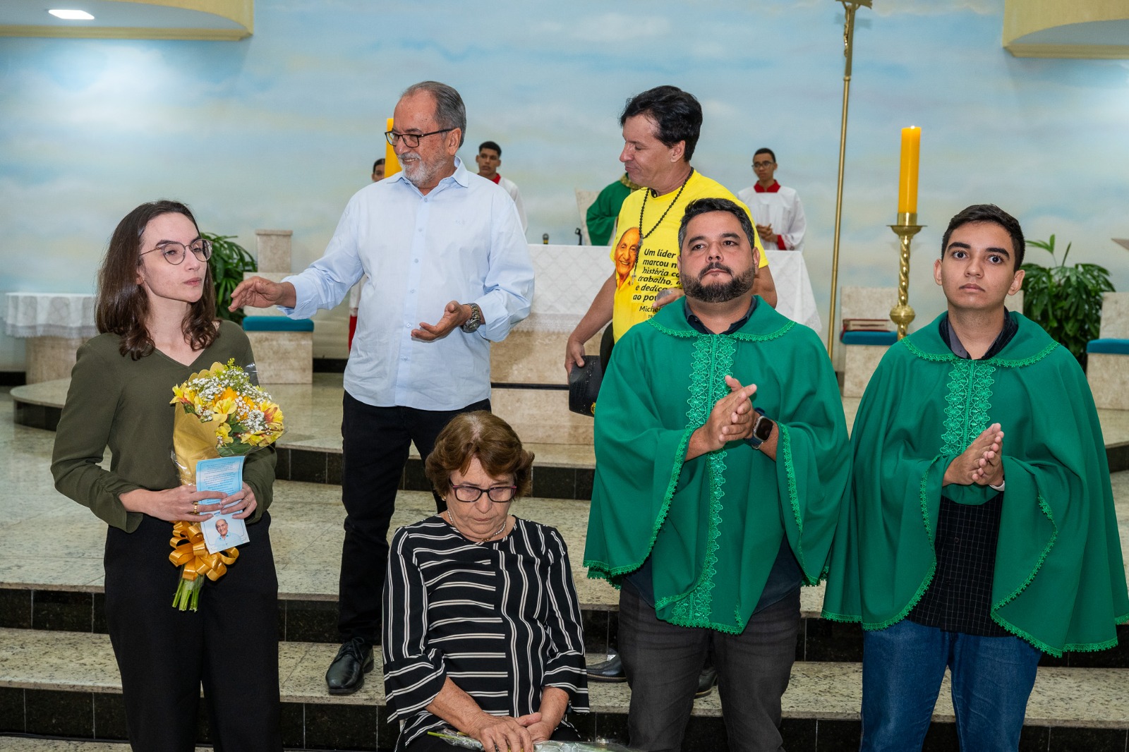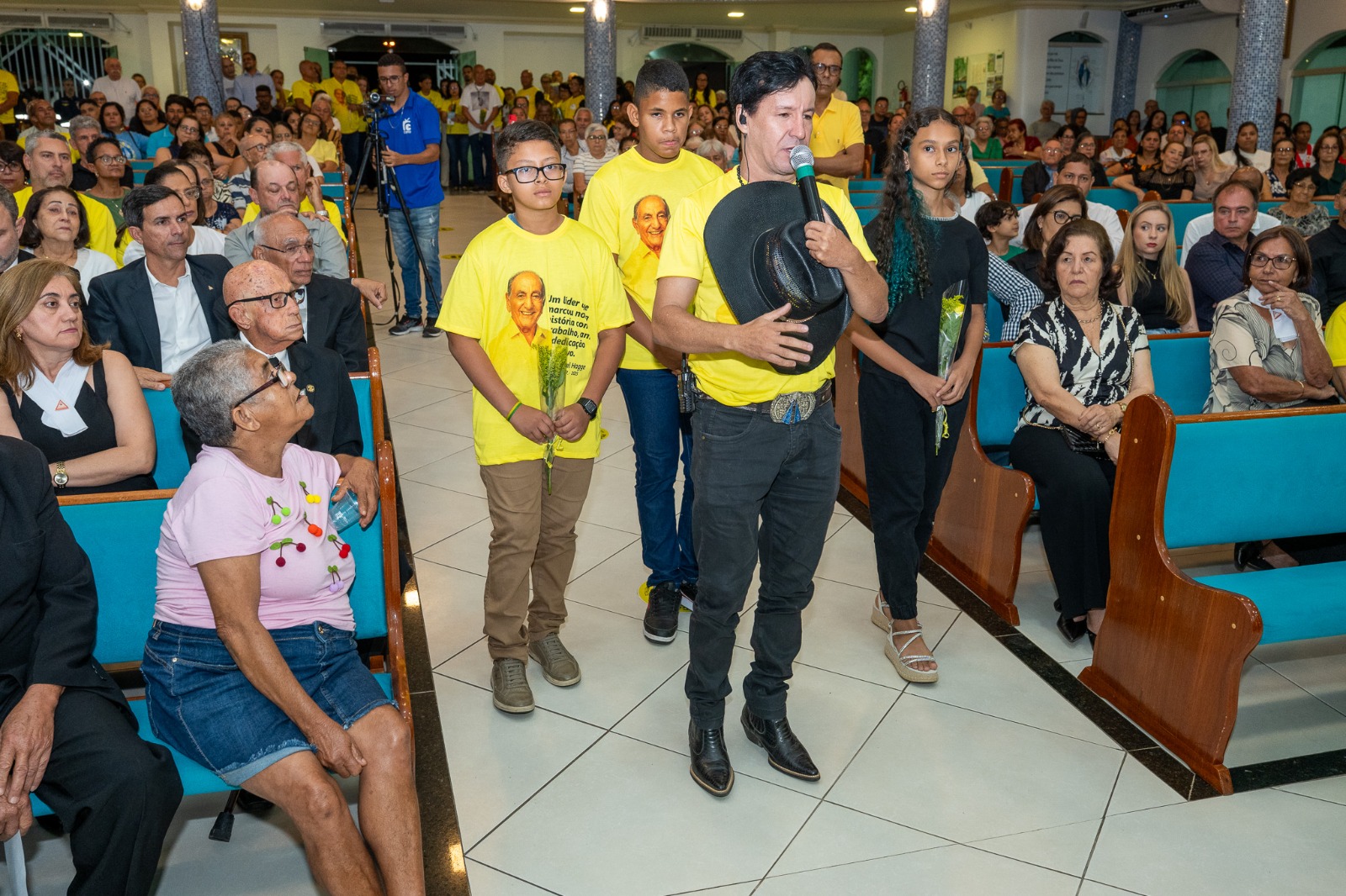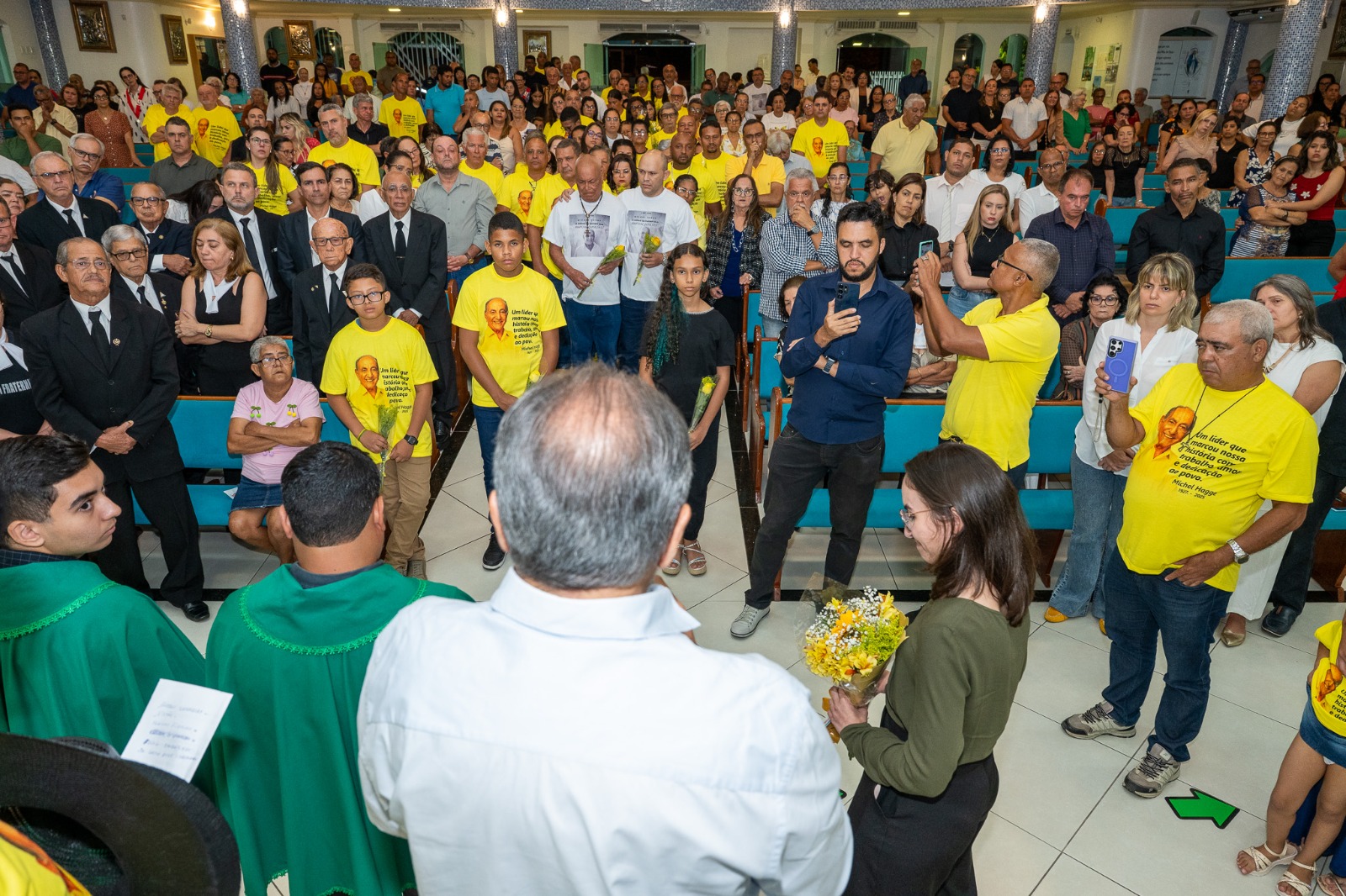 Com a igreja lotada de amigos e correligionários de Michel, todas as homenagens foram para Dona Iracema, esposa do ex-prefeito, Eduardo Hagge, filho de Michel e atual prefeito do município e os netos Rodrigo Hagge, Dudu e Ana Luiza, também presentes.