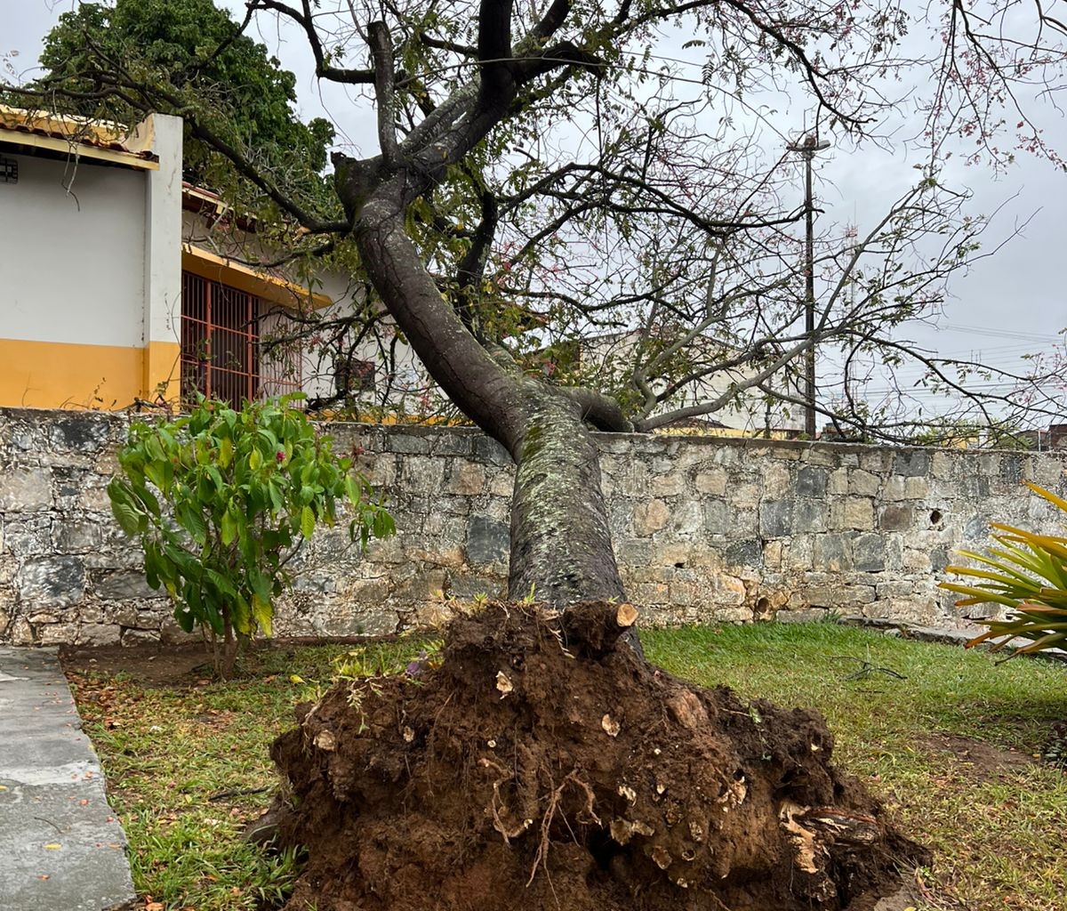 Com as chuvas fortes que caíram na madrugada desta segunda-feira (20), uma árvore localizada na Praça Guilherme Dias (Concha), em Itapetinga, acabou caindo e danificando parte do telhado da Biblioteca Municipal de Itapetinga.